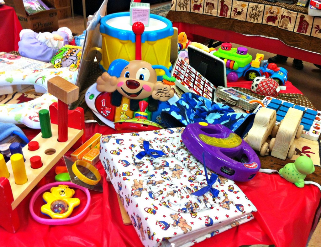 The gifts were assorted into tables, for Dads, Moms, babies, etc and there were helpers on hand so that the kids were able to choose appropriate items.
